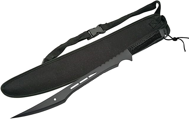 Wartech K1020-65-BL 440 Stainless Steel Full Tang Blade Ninja Hunting Machete Sword with Throwing Knives (2 Piece), 27", Blue