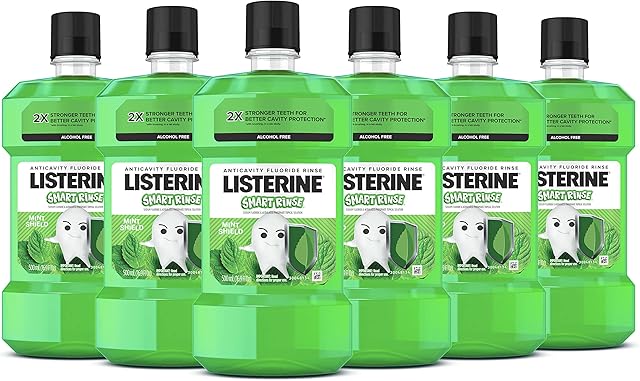 Listerine Smart Rinse Kids Mouthwash, ADA Accepted, Alcohol-Free Anticavity Sodium Fluoride Mouthwash, Oral Rinse for Dental Cavity Protection, Mint Shield Flavor for Children's Oral Care, 500 mL