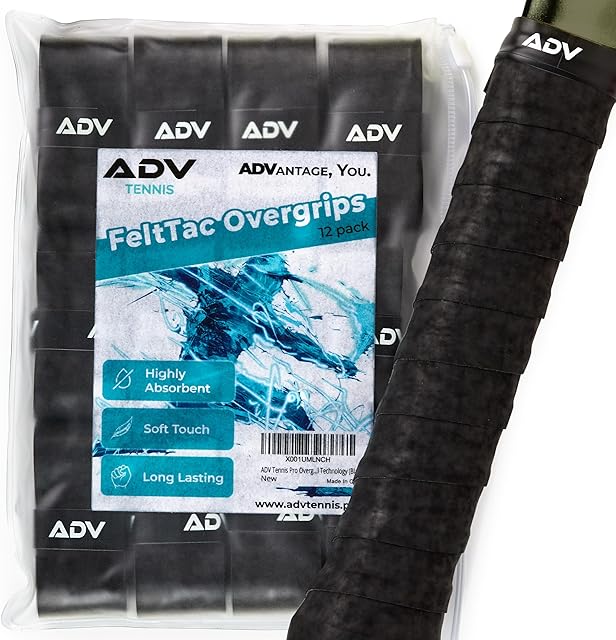 ADV Dry Tennis Overgrip Tape - 12-Pack - FeltTac Tennis Racket Grip Tape - Ultra Absorbent Tennis Grip Tape - High Velvety Comfort Tennis Racket Grips - Pro Tested & Designed Tennis Grips Overgrip